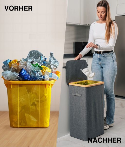 Haben Sie genug von unordentlichem Müll, unangenehmen Gerüchen und häufigem Entleeren Ihrer Mülleimer? Hier ist ein großer und praktischer Wertstoffbehälter, der es Ihnen ermöglicht, Ihre Abfälle geordnet und ästhetisch ansprechend zu trennen. Mit einem Fassungsvermögen von 90 Litern ist er ideal für Ihr Zuhause, Ihr Büro oder jeden anderen Ort, an dem Sie zu einer sauberen Umwelt beitragen möchten.