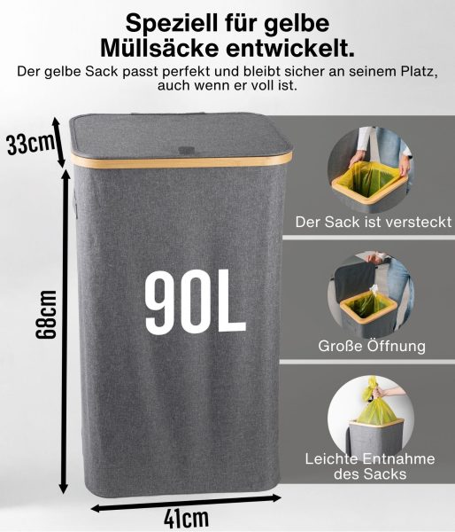 • 90L KAPAZITÄT: Speziell für 90 Liter Gelbe Säcke entwickelt, aber auch für andere Müllsäcke mit gleichem oder größerem Fassungsvermögen geeignet. Hervorragend geeignet für eine vielseitige Abfallentsorgung.