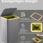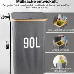 Dieses Modell zeichnet sich durch verstärkte Nähte, langlebige Materialien und eine ästhetisch anspruchsvolle graue Farbe aus, die sich nahtlos in jeden Raum einfügt – sei es ein modernes Büro oder eine minimalistische Küche. Sein kompaktes und dennoch geräumiges Design ermöglicht effizientes Recycling, ohne zu viel Platz zu beanspruchen. Darüber hinaus verfügt der Behälter über einen Bambusrahmen mit einem Eisenring, an dem der Müllbeutel befestigt ist, so dass er leicht ausgetauscht und verwendet werden kann. Der Mülleimer ist für 90-Liter-Müllsäcke ausgelegt, Sie können aber auch problemlos größere Säcke verwenden.