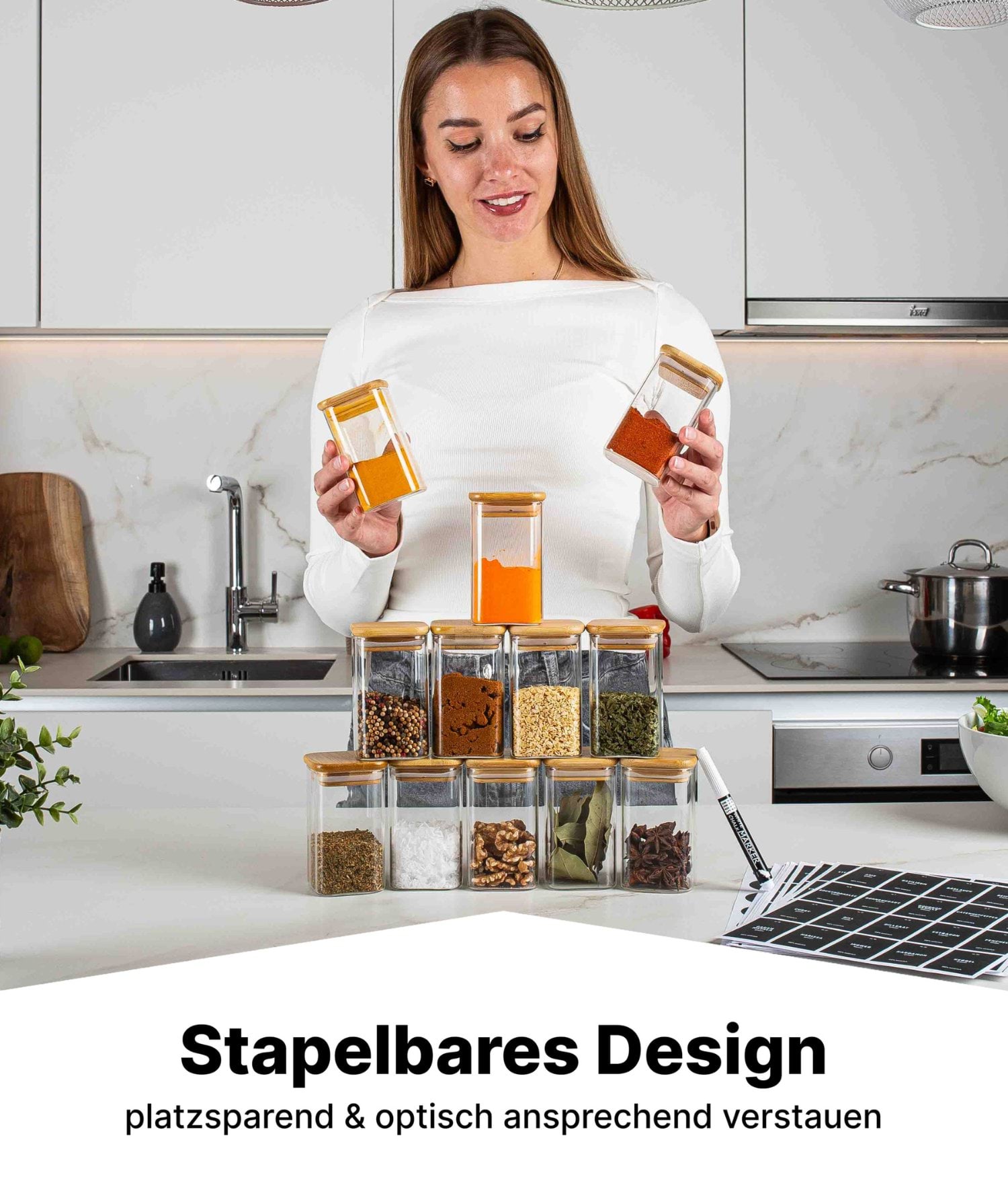- ALLES IM BLICK – Mit unseren praktischen Glasdosen haben Sie Ihre Gewürze, Süßigkeiten, Backzutaten oder Teesorten immer im Blick – stilvoll präsentiert, die perfekte Deko.