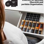 Neben den Gläsern selbst erhalten Sie außerdem 96 Etiketten in deutscher Sprache und 46 Blanko-Etiketten, mit denen Sie Ihre Vorratsbehälter, Schranktüren oder Gewürzregale mit dem ebenfalls beigelegten Kreidestift beschriften können.