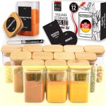 Deco haus Gewürzgläser Eckig mit Gewürzetiketten 12er Set – Gewürzdosen Set mit Holzdeckel Vorratsgläser Set für Deine Gewürze Aufbewahrung Gewürzbehälter behälter für gewürze – Gewürzgläser