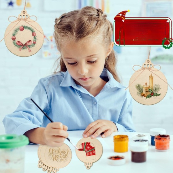 Verwandeln Sie Ihre Weihnachtsdekoration mit 30 hochwertigen, vorgebohrten Holzscheiben, die sich perfekt zum Basteln von individuellem Schmuck eignen, der Ihrem Weihnachtsbaum einen rustikalen Charme verleiht.